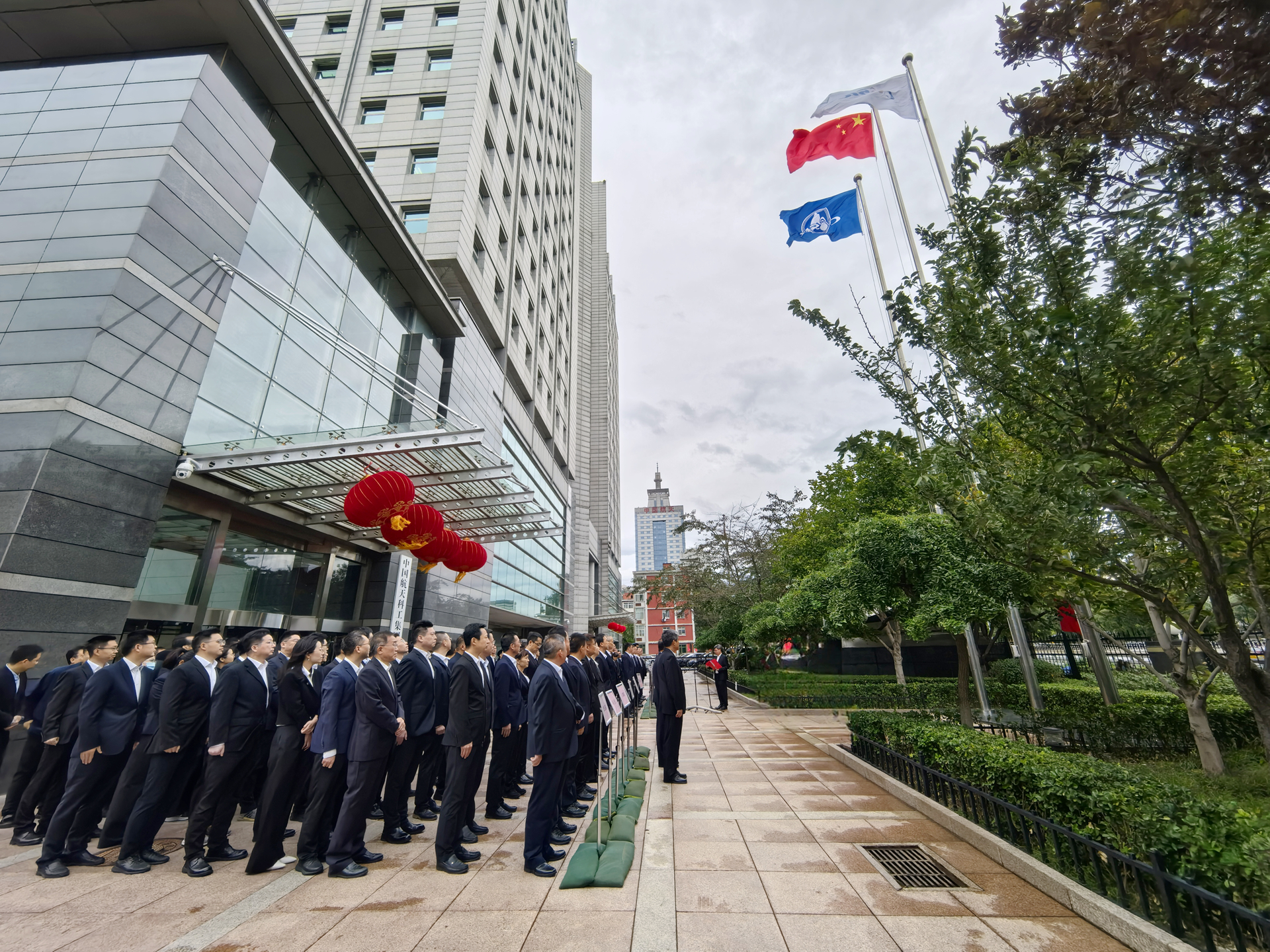 集團(tuán)公司黨組書記、董事長陳錫明,黨組副書記、總經(jīng)理龔波等全體在家黨組領(lǐng)導(dǎo),集團(tuán)公司高級管理人員、總部各部門(機(jī)構(gòu))主要負(fù)責(zé)人及員工參加升旗儀式。龔波主持升旗儀式。