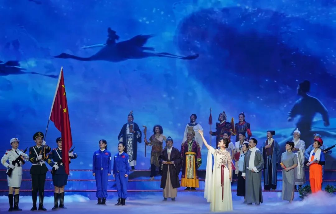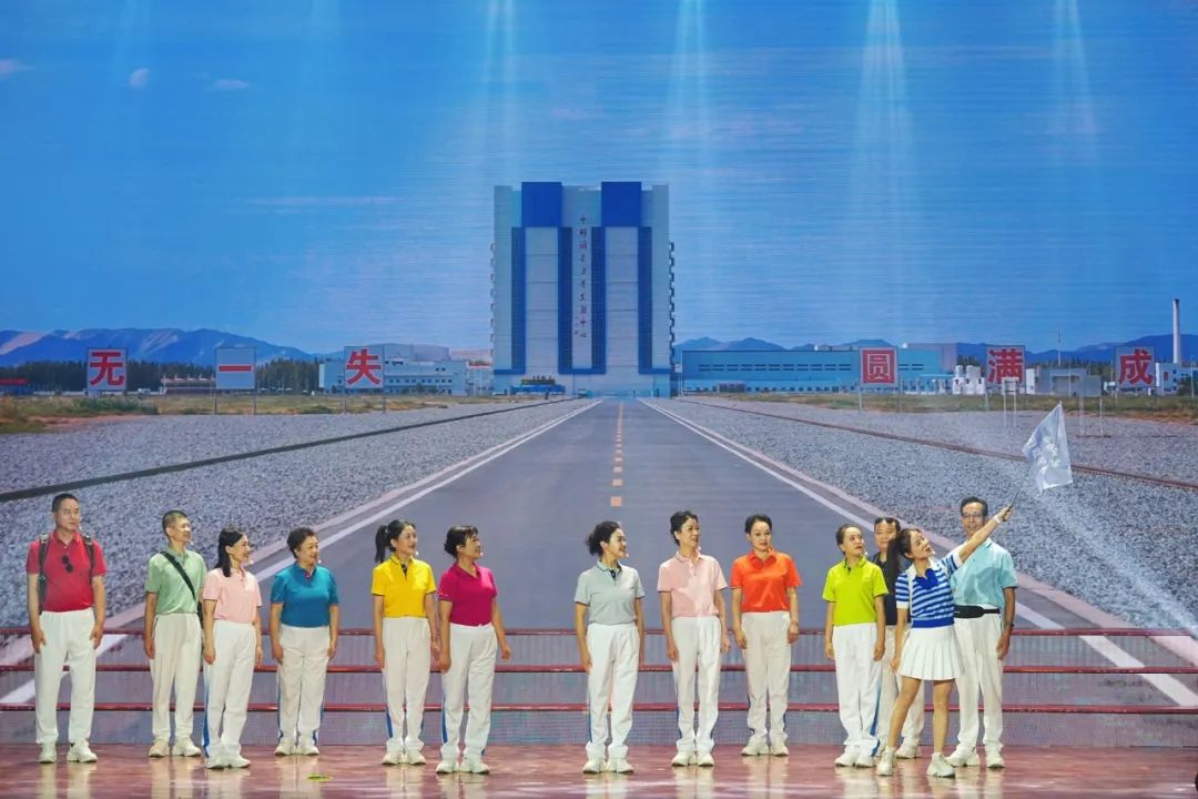 除了動(dòng)人的歌曲演唱,主題歌會上還穿插了《逐夢華夏》《追夢旅行》等情景表演歌唱節(jié)目。老同志們換上了代表不同年代的服飾。他們以歌聲為媒,穿梭在時(shí)代長河中,生動(dòng)再現(xiàn)了幾代航天人接力奮斗、勇攀高峰的感人故事。