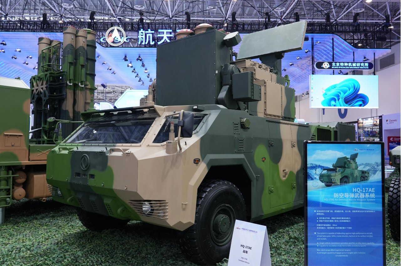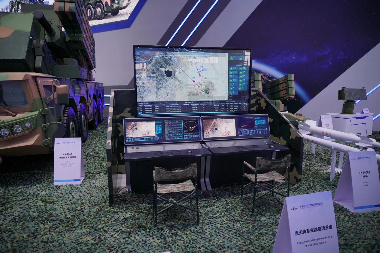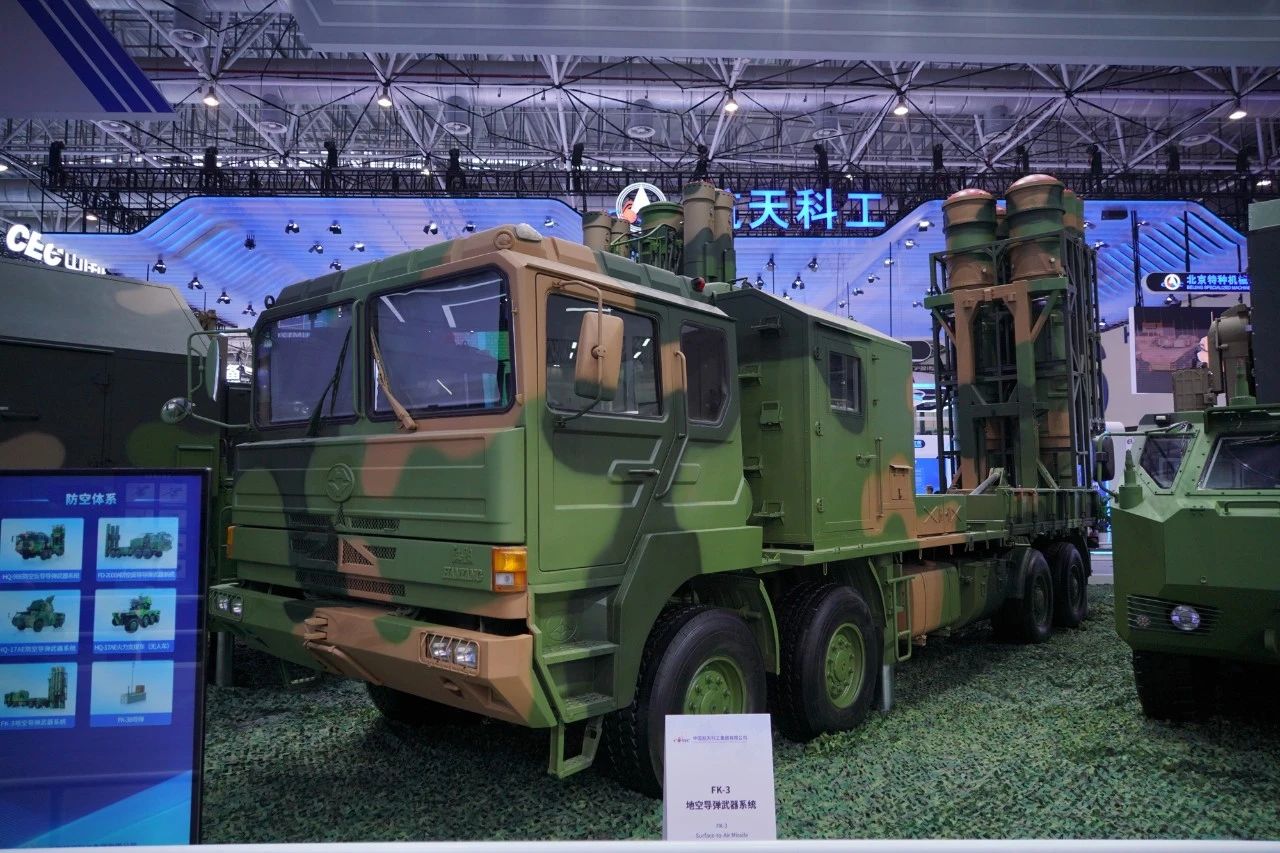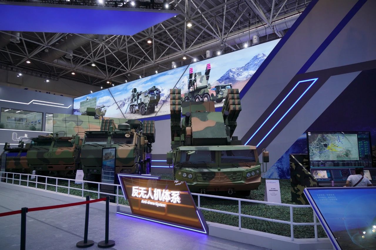 在防空體系展區(qū),HQ-9BE遠程防空武器系統(tǒng)、FD-2000A中遠程防空武器系統(tǒng)、FK-3中遠程防空武器系統(tǒng)、HQ-17AE近程防空武器系統(tǒng)等“明星裝備”煥新亮相。