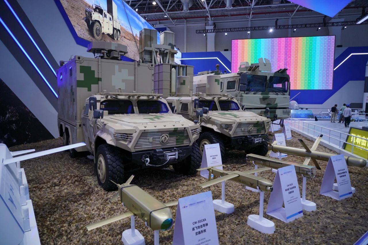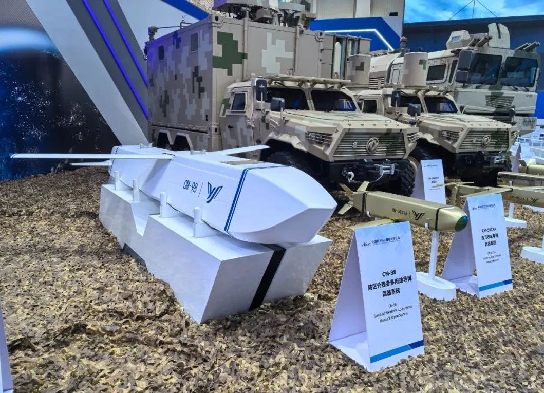其中,CM-98隱身多用途導彈、CM-502X單兵巡飛攻擊導彈均為首次亮相。CM-98是根據(jù)國際市場需求研制的一型隱身多用途導彈武器系統(tǒng),可在防區(qū)外遂行打擊對方高價值目標,具有全天時、全天候使用,高隱身穿透、抗干擾突防、寬飛行包絡、高效能毀傷、易于維護保障等特點。CM-502X能夠高效打擊重型主戰(zhàn)坦克,具有靈巧打擊、多模式簡易發(fā)射等特點。