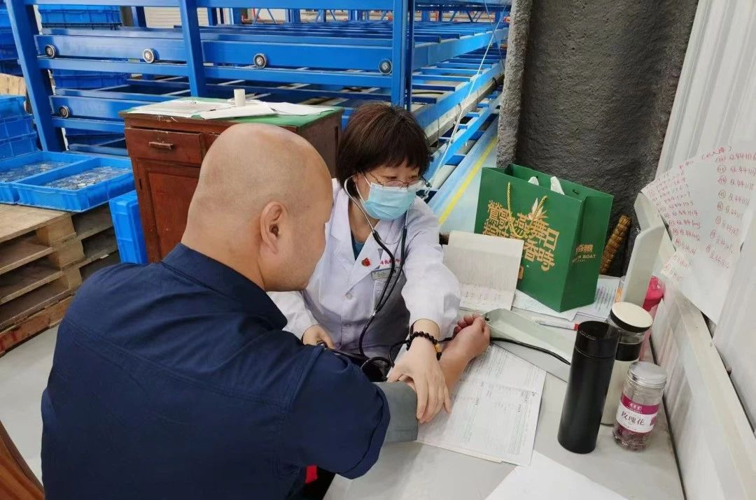 210所醫(yī)務(wù)室黨支部為保障科研生產(chǎn)一線職工的健康,開展送藥到基層、巡診到崗位服務(wù)。醫(yī)務(wù)人員每周定期巡診生產(chǎn)區(qū)各個車間、每個工段。他們利用大家工作休息間隙,為奮戰(zhàn)在科研生產(chǎn)一線的工人師傅們認(rèn)真測量體溫、細(xì)心監(jiān)測血壓、心率,并對有高血壓、高血脂、糖尿病等慢性病史的師傅做到重點(diǎn)關(guān)注,按時詢問、提醒并耐心指導(dǎo)大家安全用藥。