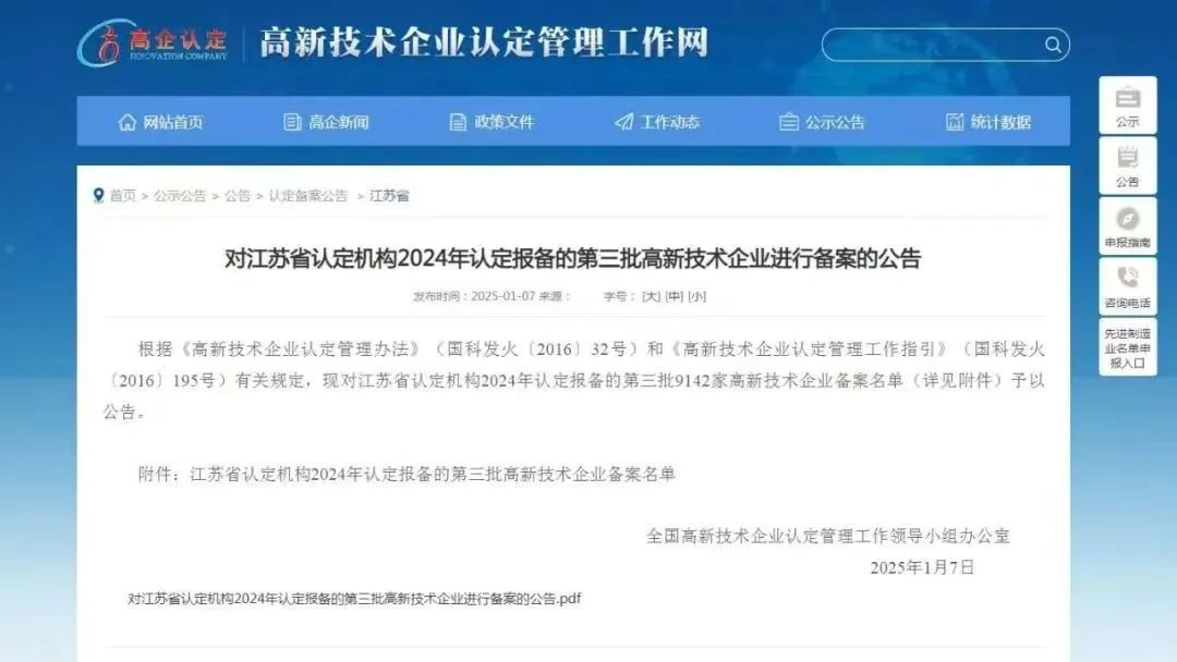 近日,江蘇省認(rèn)定機(jī)構(gòu)2024年認(rèn)定報備的第三批高新技術(shù)企業(yè)備案名單出爐,南京晨光公司再次通過“高新技術(shù)企業(yè)”認(rèn)定。此次入選標(biāo)志著公司在核心自主知識產(chǎn)權(quán)、科技成果轉(zhuǎn)化能力等方面得到國家相關(guān)部門的肯定與認(rèn)可。