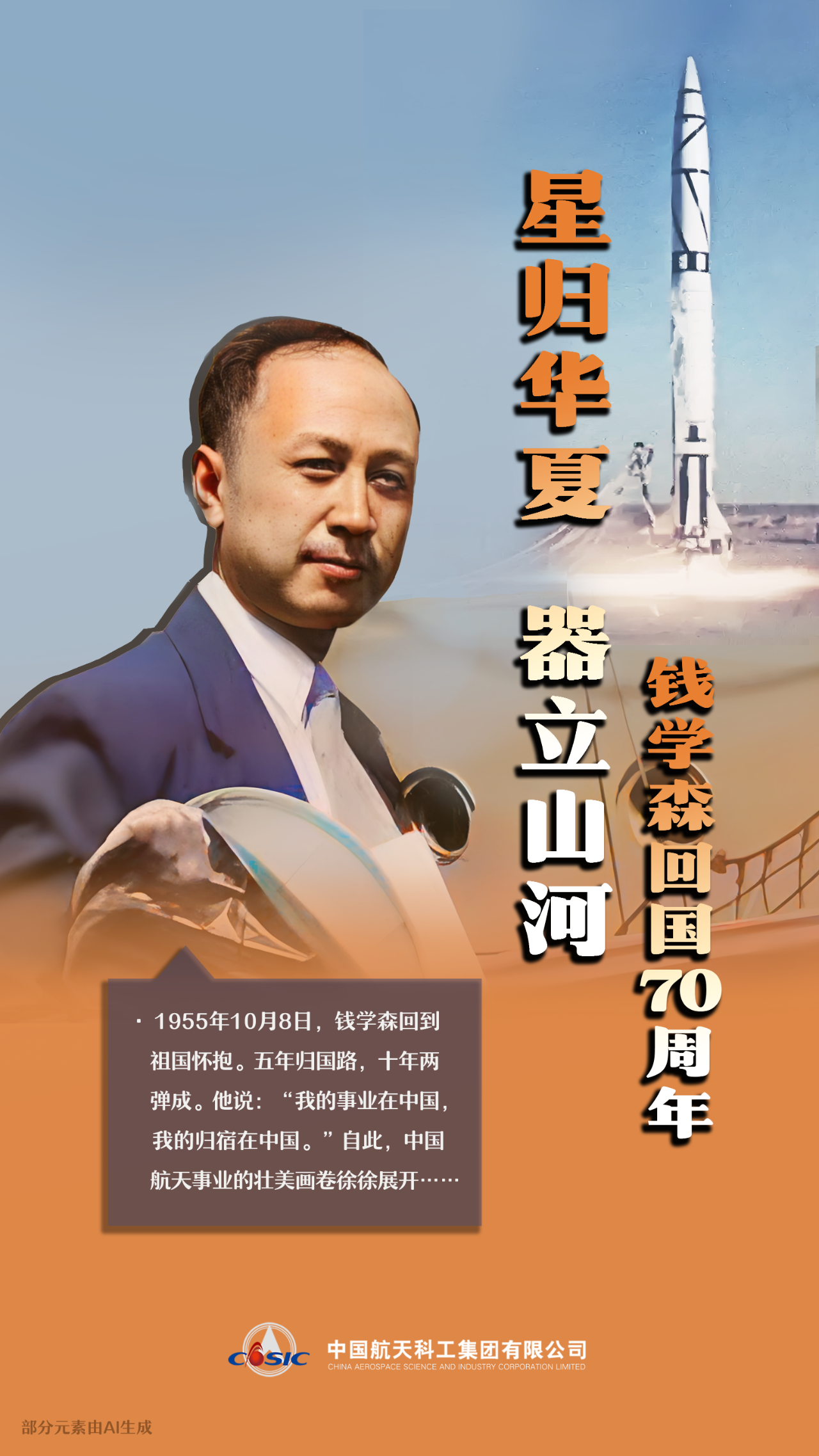 星歸華夏、器立山河,追憶錢老、傳承精神,繼往開來、接續(xù)奮斗。(海報(bào)/張彤 文案/韓超)