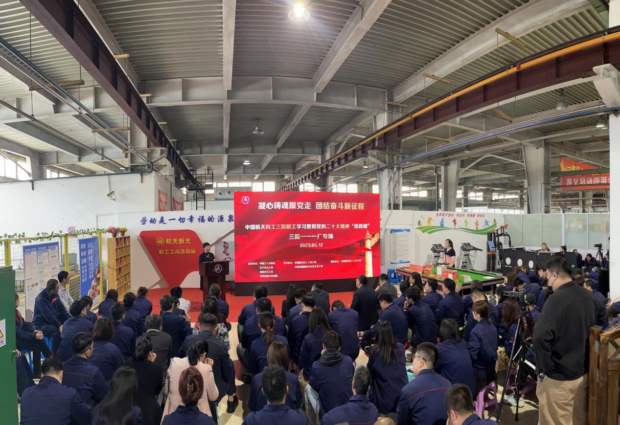 三院工會堅決履行團結(jié)引導職工群眾聽黨話、跟黨走的政治責任,各級工會組織通過干部培訓班、專題學習等形式線上線下學習黨的二十大精神、中國工會十八大精神。在“飛航e家”上線中國工會十八大新聞中心,千余名職工連續(xù)10天打卡學習相關(guān)知識并完成答題活動。三院工會創(chuàng)新開設(shè)“思政課”,由24位勞模工匠、先進典型組成的宣講團走進8家單位的班組車間、生產(chǎn)一線,用“身邊故事”講活“火熱實踐”。