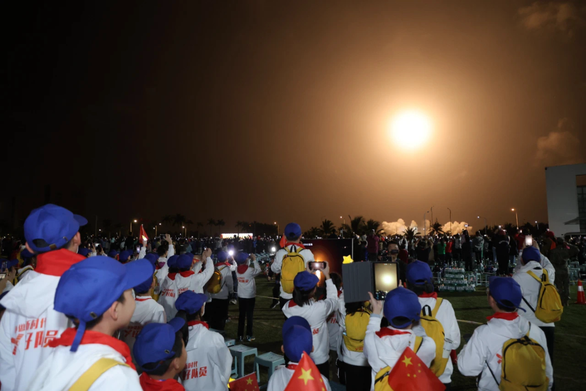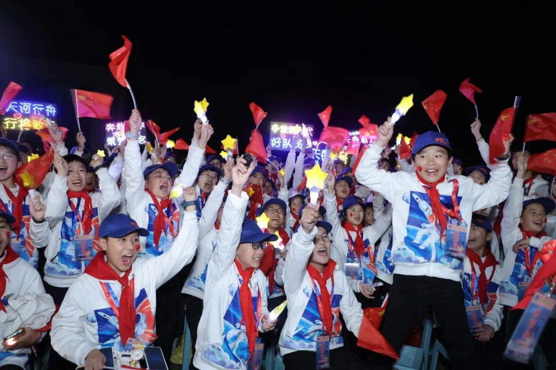 少先隊員們現(xiàn)場觀看火箭發(fā)射盛況