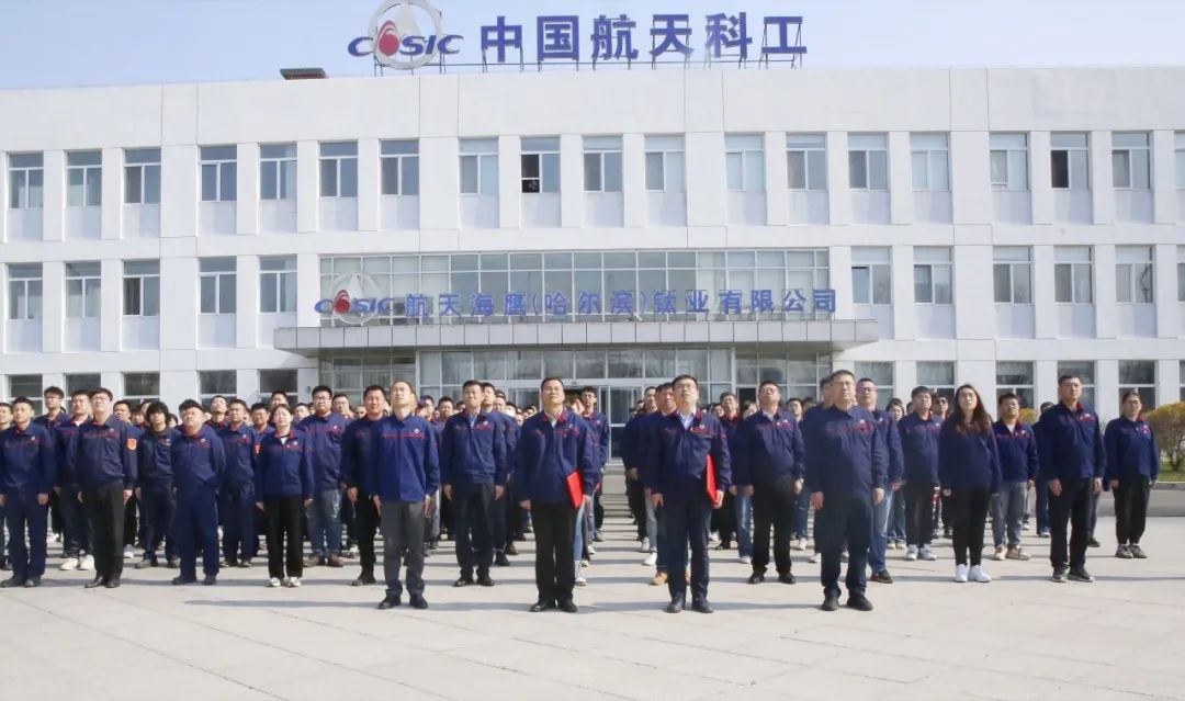 國旗護(hù)衛(wèi)隊英姿颯爽、步伐鏗鏘,昂首闊步走向升旗臺。伴隨著雄壯的國歌和航天科工之歌,五星紅旗、集團(tuán)公司司旗和三院院旗冉冉升起,在場的干部職工肅立行注目禮。