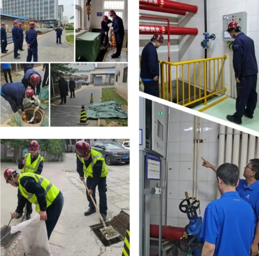 對在京園區(qū)的動力站、變電站、公共食堂、地下空間、施工工地等重點防汛部位和人員密集場所進(jìn)行隱患排查,增加沙袋沙箱和抽水泵配備數(shù)量,完善防雨水倒灌措施。