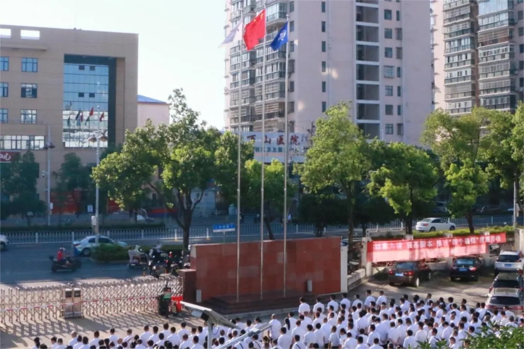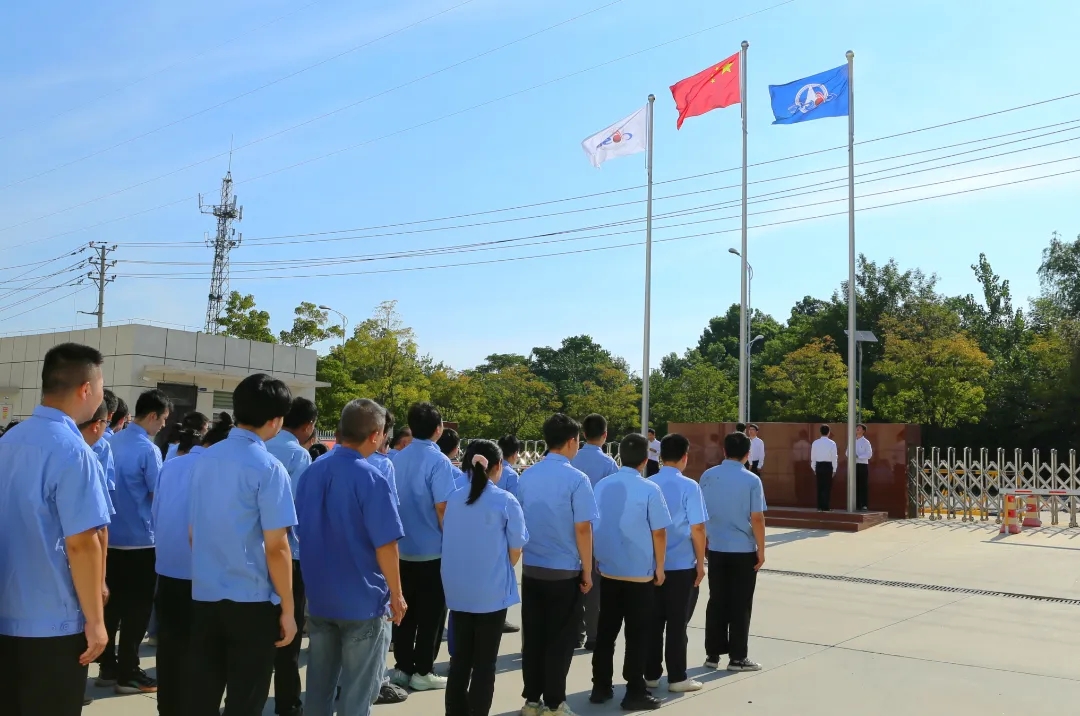 在雄壯的國(guó)歌聲中,鮮艷的五星紅旗冉冉升起。在激昂的集團(tuán)公司司歌聲中,司旗迎風(fēng)飄揚(yáng)。
