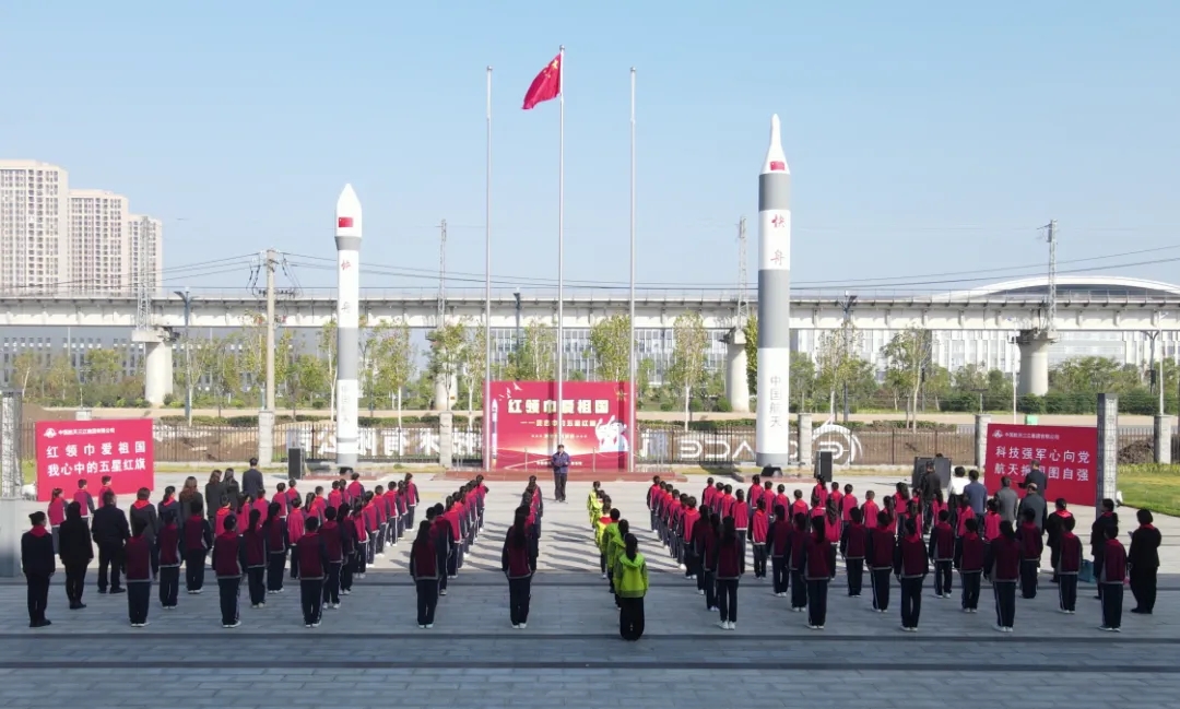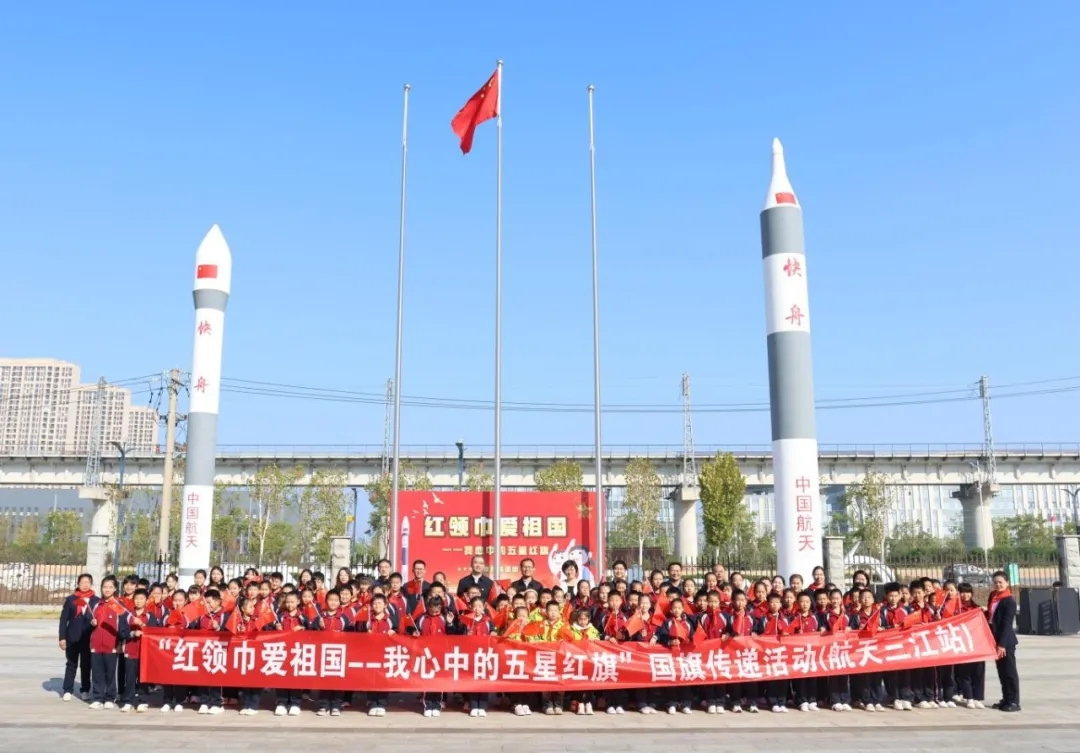 10月23日,由全國(guó)少工委聯(lián)合中國(guó)載人航天工程新聞宣傳辦公室舉辦的“紅領(lǐng)巾愛祖國(guó)——我心中的五星紅旗”國(guó)旗傳遞活動(dòng),在湖北武漢國(guó)家航天產(chǎn)業(yè)基地快舟火箭產(chǎn)業(yè)園舉行。共青團(tuán)湖北省委領(lǐng)導(dǎo)、湖北省少工委、共青團(tuán)武漢市委、武漢市新洲區(qū)、航天科工九院及所屬火箭公司等相關(guān)負(fù)責(zé)同志及代表,武漢市新洲區(qū)雙柳街中心小學(xué)、武漢市十一實(shí)驗(yàn)學(xué)校少先隊(duì)員、少先隊(duì)輔導(dǎo)員代表,共計(jì)100余人參加活動(dòng)。