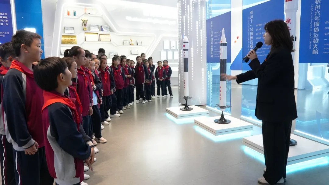隨后,少先隊(duì)員們與快舟固體運(yùn)載火箭親密接觸,現(xiàn)場(chǎng)參觀,并到火箭公司科普展廳開展見學(xué),豐富翔實(shí)的圖文資料、視頻動(dòng)畫、快舟系列火箭模型等,展示了中國(guó)航天事業(yè)的輝煌成就、快舟火箭的發(fā)展歷程,以及人類對(duì)未來(lái)太空探索的夢(mèng)想。少先隊(duì)員們駐足觀看,不時(shí)向身邊的講解員發(fā)問(wèn),對(duì)中國(guó)航天抱有極大興趣。