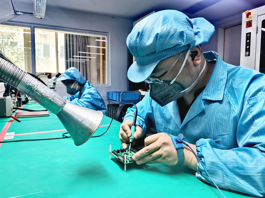 210所智能控制研究中心通孔焊接小組職工以“嚴(yán)慎細(xì)實(shí)”的工作作風(fēng),高質(zhì)量完成產(chǎn)品電路板手工焊接任務(wù),確保產(chǎn)品順利按節(jié)點(diǎn)交付。