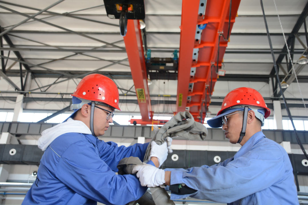 紅峽公司某車間工房?jī)?nèi),兩名職工熟練地用吊繩對(duì)產(chǎn)品進(jìn)行捆綁,粗糲的吊繩在兩人手中靈活傳遞,幾個(gè)回合下來(lái),產(chǎn)品被穩(wěn)穩(wěn)地固定住,為下一道工序做好鋪墊。