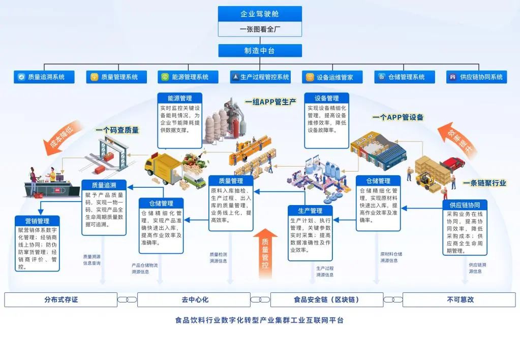 航天云網(wǎng)公司自主開發(fā)的“食品飲料行業(yè)數(shù)字化轉(zhuǎn)型(全域)解決方案”聚焦食品企業(yè)關(guān)注提升生產(chǎn)效率、降低運營成本、加強(qiáng)質(zhì)量管控等需求,從產(chǎn)品鏈和價值鏈深度融合的角度出發(fā),提供數(shù)字化轉(zhuǎn)型全域解決方案,涵蓋產(chǎn)品全生命周期管理系統(tǒng)、銷售管理系統(tǒng)、供應(yīng)鏈協(xié)同系統(tǒng)、生產(chǎn)過程管控系統(tǒng)、質(zhì)量管理系統(tǒng)、質(zhì)量溯源系統(tǒng)、設(shè)備運維管家、能源優(yōu)化系統(tǒng)、倉儲管理系統(tǒng)、成本分析系統(tǒng)等12款應(yīng)用系統(tǒng)產(chǎn)品集。目前,該方案已賦能廣東、貴州、甘肅等多個省市數(shù)十家企業(yè)實現(xiàn)數(shù)字化轉(zhuǎn)型,助力制糖、飲用水、食品添加劑、飲料、啤酒等細(xì)分行業(yè)企業(yè)實現(xiàn)提質(zhì)降本增效。