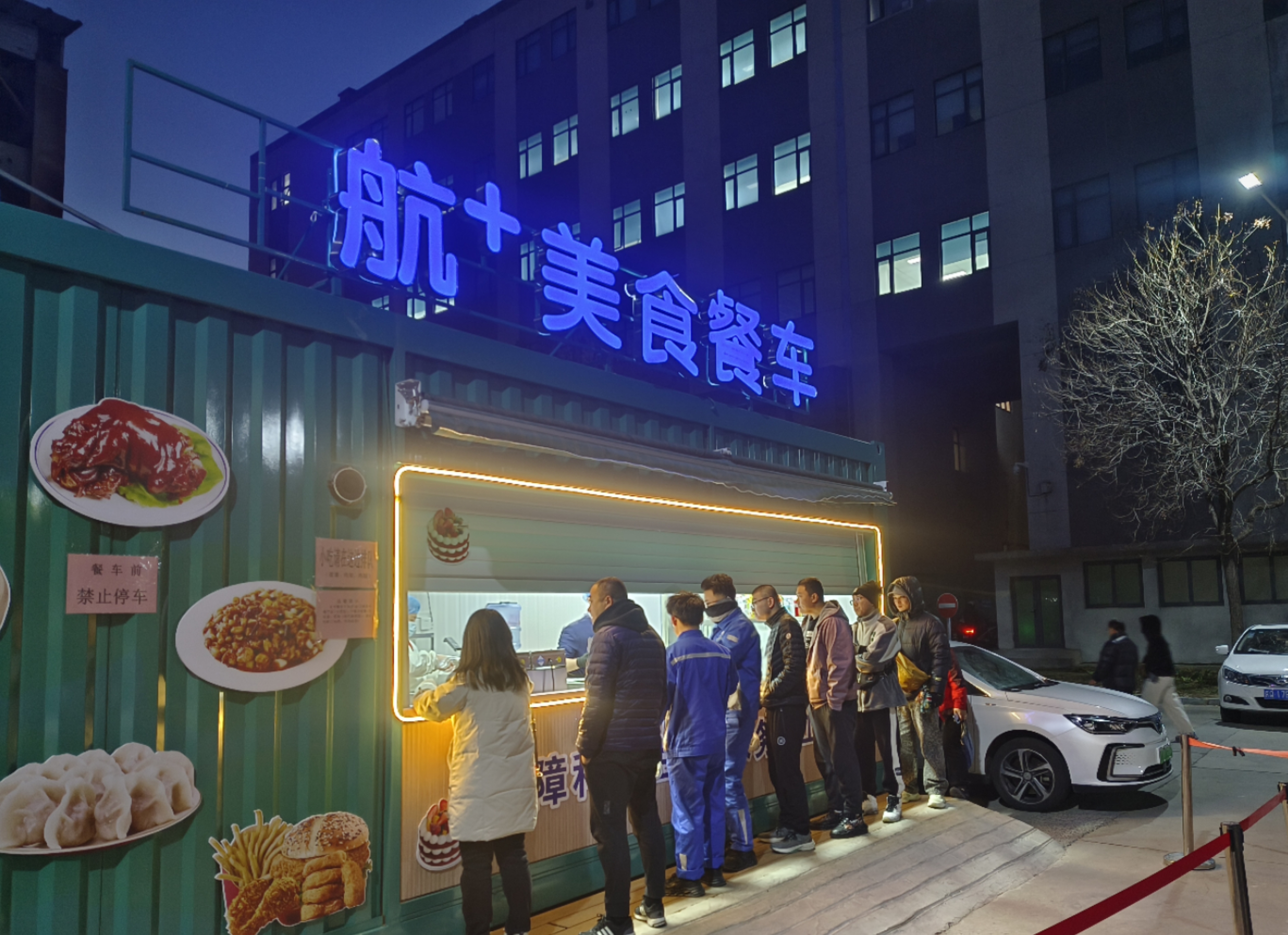 進入四季度以來,科研生產任務繁重,為更好地保障職工用餐服務,工業(yè)區(qū)內1號餐車供餐時間延長至20點,主要供應鐵板炒飯、炸貨、飲品等,在切實滿足職工多元化用餐需求的同時,也驅散了職工加班的疲憊與冬日的寒意,為接下來的工作充電蓄能。每當夜幕降臨,1號餐車依然燈火通明,守候著工業(yè)區(qū)內奮力拼搏的二院職工。(文/郭蕊)