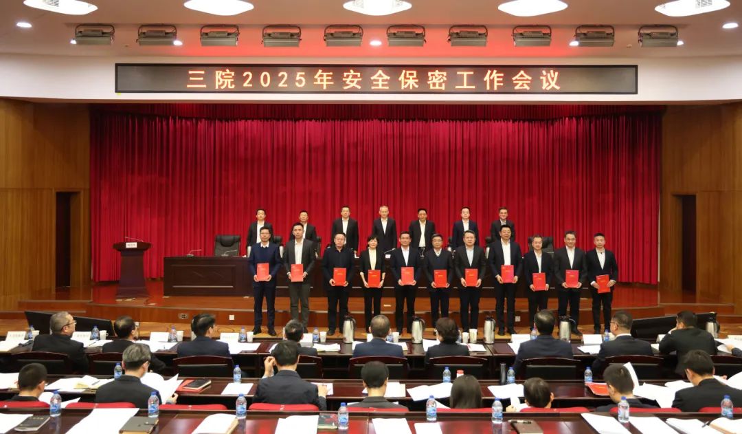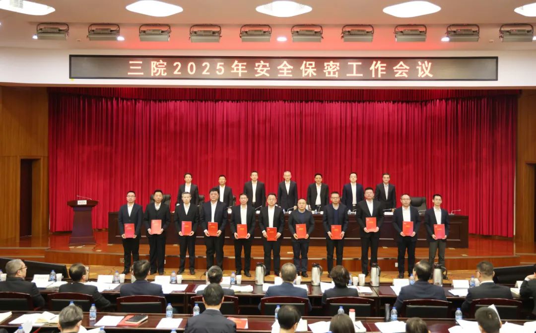 會(huì)議作了題為《強(qiáng)化問題導(dǎo)向 提升治理能力 以高水平安全促進(jìn)高質(zhì)量發(fā)展》的安全保密工作報(bào)告,宣讀了三院2024年度安全生產(chǎn)、保密、保衛(wèi)工作先進(jìn)表彰的決定,通報(bào)了三院2024年《安全保密責(zé)任書》考核完成情況,并作2025年《安全保密責(zé)任書》說明。院領(lǐng)導(dǎo)向三級(jí)單位黨政主要負(fù)責(zé)人頒發(fā)了2025年《安全保密責(zé)任書》。