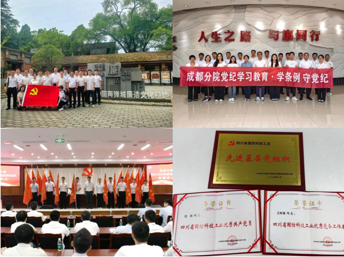 成都分院始終將黨的建設(shè)擺在首位,黨委帶領(lǐng)13個黨支部高質(zhì)量開展黨紀(jì)學(xué)習(xí)教育,通過精心組織參觀警示教育基地,舉辦漫畫解讀《中國共產(chǎn)黨紀(jì)律處分條例》展、拍攝微視頻等,嚴(yán)的基調(diào)、嚴(yán)的措施、嚴(yán)的氛圍進一步強化。1個黨支部、2名黨員獲評四川省國防科技工業(yè)“兩優(yōu)一先”表彰,省級榮譽獎勵實現(xiàn)“零的突破”。10支黨員突擊隊攻堅克難,實現(xiàn)業(yè)務(wù)工作和黨建工作有效融合。