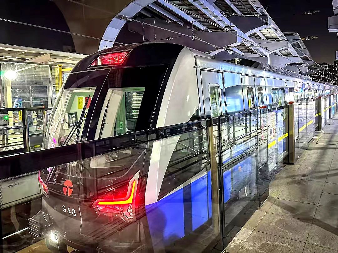 軌道交通指揮控制大廳的巨幅顯示屏上,在新型信號系統(tǒng)的控制下,一輛輛列車猶如一顆顆閃亮的星辰,在蔚藍色的“星幕”上運轉(zhuǎn)有序、經(jīng)停有方。在連續(xù)3小時40分的高強度演練中,新型信號系統(tǒng)精準控制著每一輛列車,通過壓縮列車周轉(zhuǎn)時間、優(yōu)化場段出車路徑等措施,將列車最小追蹤間隔能力由原來的150秒縮短至90秒,高峰時段運力提升了40%。在全部28列車、115列次的運營考核中,新型信號系統(tǒng)取得了正點率100%、故障率0%的優(yōu)異成績!