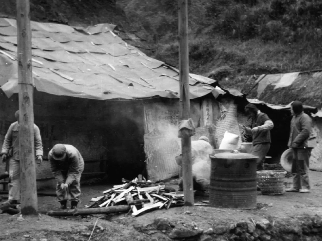 “先生產(chǎn)后生活,先廠房后民用。”三線建設(shè)者們住在帳篷里、草棚里。“貴州落雨當(dāng)過冬”,多雨的貴州讓人們?cè)谑⑾囊搽x不開被子,白天與夜間的溫差很大。冬天更是濕冷入骨髓,夏天蚊叮蟲咬不說,還時(shí)常有蛇鉆到床上、鞋里。