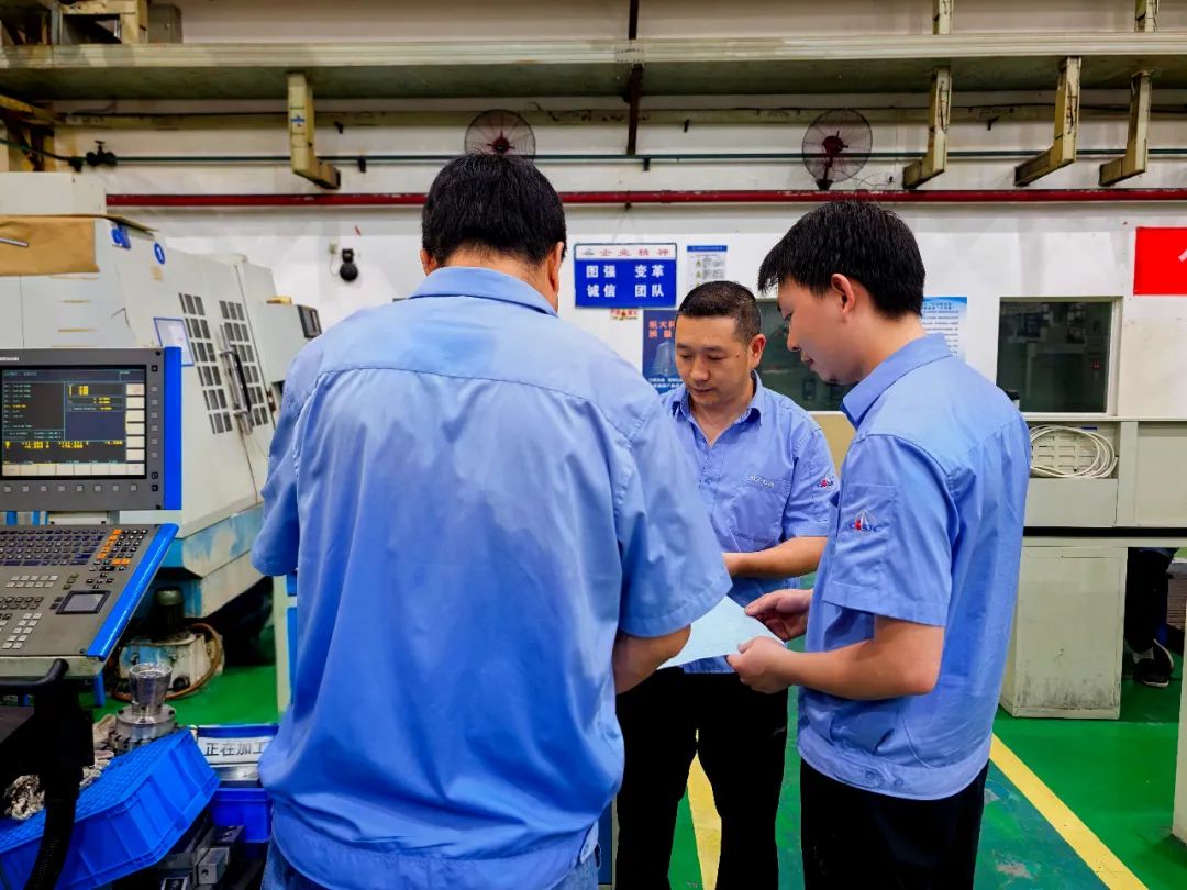 航天電科機加車間生產(chǎn)線上,機器轟鳴,設(shè)備正開足馬力運行,職工們?nèi)褙炞ⅲ瑫r而彎腰仔細操作著機械部件進行調(diào)試,時而挺直身板,目光如炬,仔細觀察著每一個細節(jié),悶熱的車間讓他們汗水都打濕了工服,但他們依然以高昂的斗志、飽滿的熱情、堅定的信心投入到緊張而有序的生產(chǎn)工作中,助力全年目標完成。