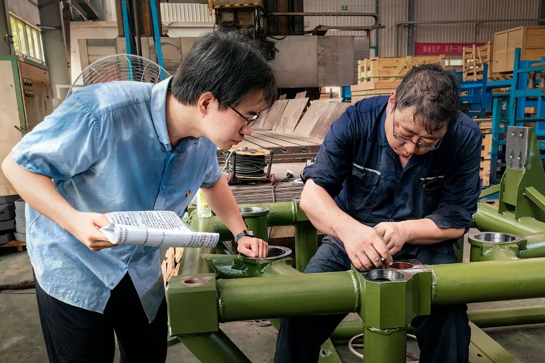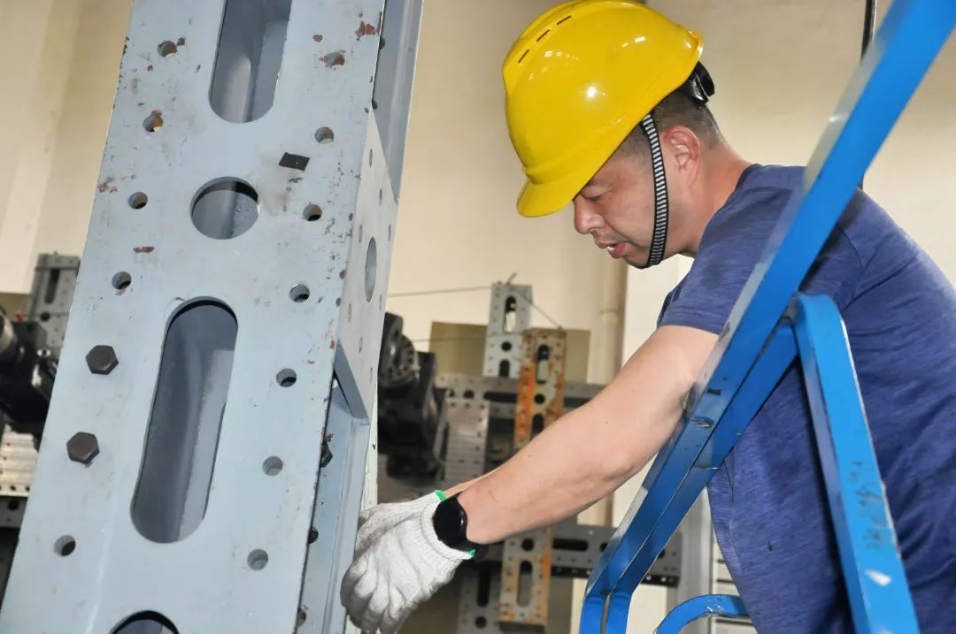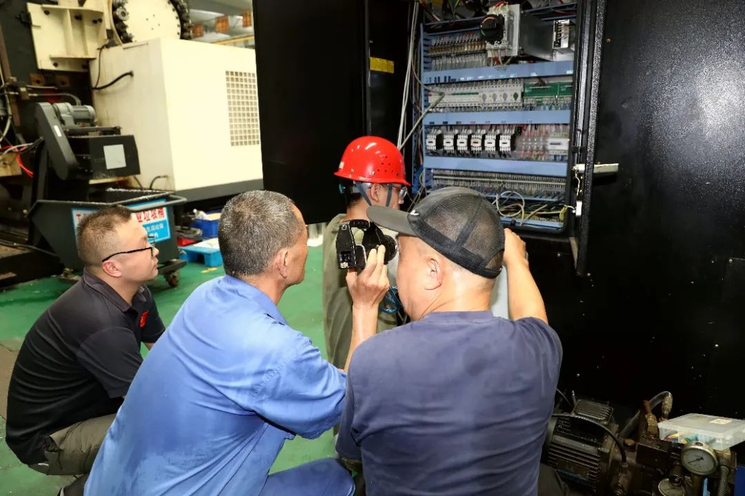 7月9日,氣象臺(tái)發(fā)布高溫橙色預(yù)警。炎熱夏季,正是設(shè)備問題高發(fā)之時(shí),險(xiǎn)峰公司機(jī)動(dòng)保障部全力保障設(shè)備正常運(yùn)行,機(jī)修工老張和小蘇正與設(shè)備廠家人員共同協(xié)作維修著故障設(shè)備。(圖文/張玉蓮)