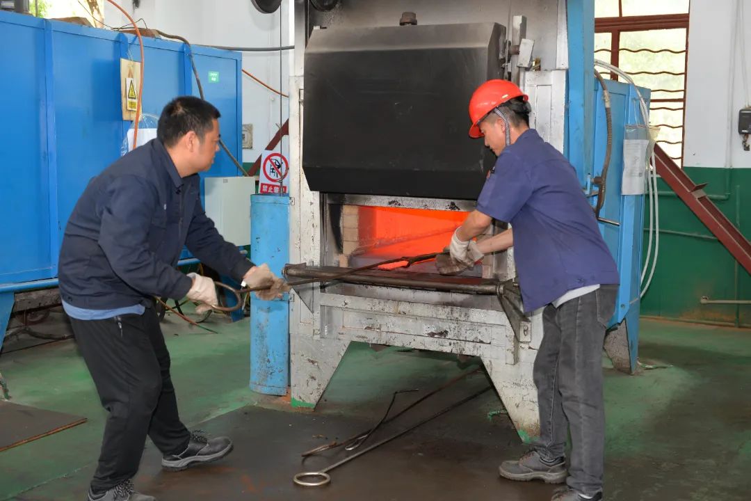 近期,生產(chǎn)任務(wù)繁忙,紅林公司的熱處理車間開啟“燒烤”模式。正火、退火、回火、淬火……工人師傅們嚴(yán)格按照工藝要求進(jìn)行熱處理,確保產(chǎn)品性能符合要求。圖為熱處理班組師傅正在檢修加熱爐。(圖文/張旺)