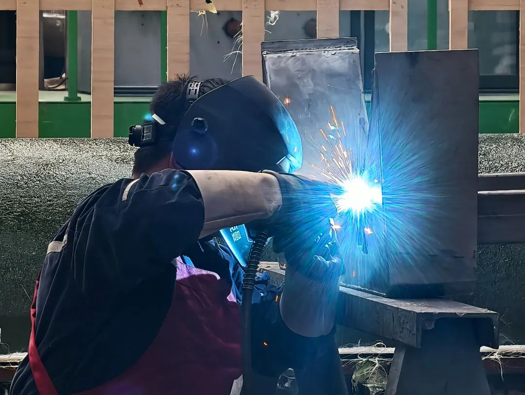 當(dāng)前,長征公司廠房內(nèi),機(jī)器轟鳴與高溫疊加,焊槍火花飛濺,焊工師傅全副武裝,化身“鎧甲勇士”,以焊槍作筆,用熱浪為墨,爭分奪秒趕制任務(wù)訂單。(圖文/李玲)