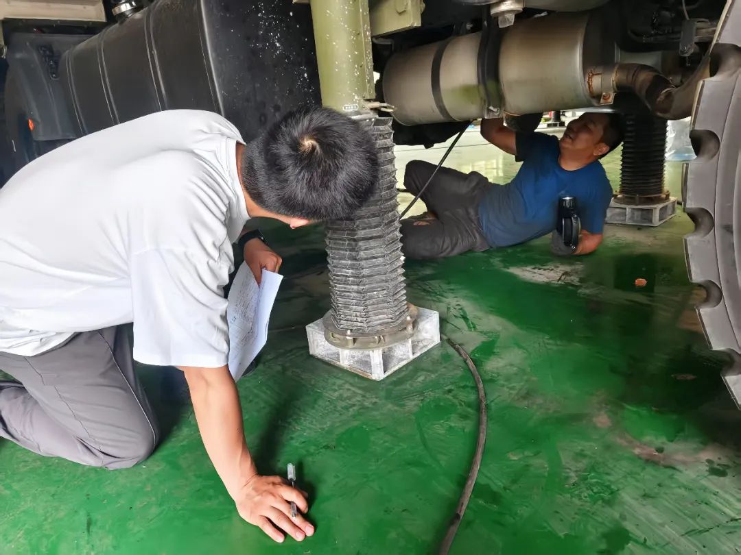 近日,為確保一項(xiàng)目維保工作按標(biāo)準(zhǔn)推進(jìn)、按時(shí)完成,微電院設(shè)計(jì)師駐守現(xiàn)場。走進(jìn)車間,設(shè)計(jì)師細(xì)致核查外協(xié)操作步驟,全程把控維保質(zhì)量,有序推進(jìn)各項(xiàng)工作。圖為設(shè)計(jì)師與外協(xié)人員對(duì)底盤進(jìn)行維保工作。(圖文/張文杰)