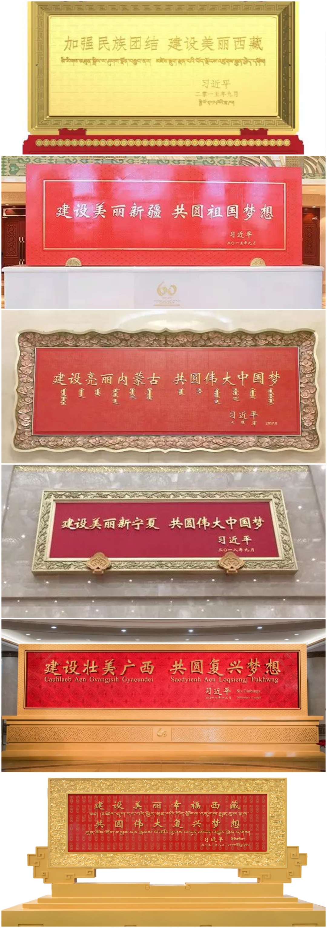 此前,航天晨光也先后承制了包括西藏自治區(qū)成立50周年賀匾、新疆維吾爾自治區(qū)成立60周年賀匾、內(nèi)蒙古自治區(qū)成立70周年賀匾、寧夏回族自治區(qū)成立60周年賀匾、廣西壯族自治區(qū)成立60周年賀匾、西藏和平解放70周年賀匾等在內(nèi)的多項(xiàng)中央重大禮品項(xiàng)目。