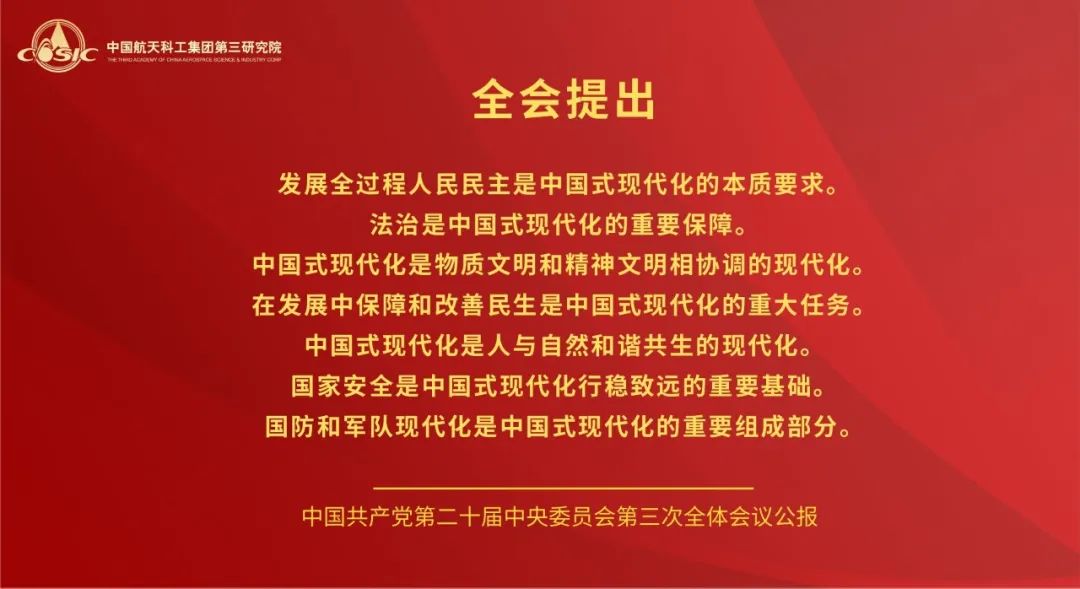 黨的二十屆三中全會(huì),是在以中國(guó)式現(xiàn)代化全面推進(jìn)強(qiáng)國(guó)建設(shè)、民族復(fù)興偉業(yè)的關(guān)鍵時(shí)期召開(kāi)的一次十分重要的會(huì)議。航天三院黨委將學(xué)習(xí)好宣傳好貫徹好黨的二十屆三中全會(huì)精神作為當(dāng)前和今后一個(gè)時(shí)期的一項(xiàng)重大政治任務(wù),高度重視,迅速行動(dòng),引導(dǎo)三院全體黨員干部職工把思想和行動(dòng)統(tǒng)一到全會(huì)精神上來(lái),把智慧和力量凝聚到落實(shí)全會(huì)精神和部署上來(lái),聚焦主責(zé)主業(yè),履行強(qiáng)軍首責(zé),持續(xù)推動(dòng)飛航事業(yè)高質(zhì)量發(fā)展。