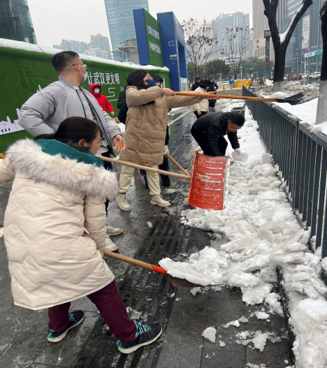 近日,武漢出現(xiàn)寒潮、低溫雨夾雪等冰凍天氣,道路積雪濕滑,給市民出行帶來(lái)了極大不便。為有效應(yīng)對(duì)雨雪冰凍天氣,全力保障道路暢通和群眾出行安全,中國(guó)航天科工財(cái)務(wù)公司武漢分公司黨支部積極組織黨員和志愿者參加了由廣發(fā)銀行大廈黨委和北湖街道共同組織開(kāi)展的“微光成炬 益匯江漢”掃雪除冰志愿服務(wù)。