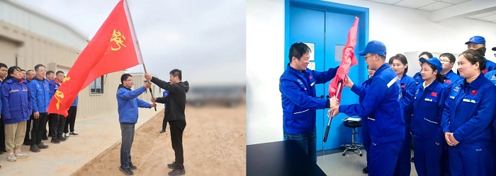 授旗儀式上,所領(lǐng)導為黨員突擊隊代表、青年突擊隊代表授旗。突擊隊隊長介紹隊名、人員組成和任務(wù)目標。