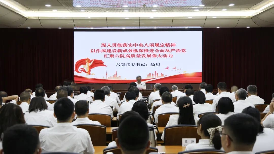 趙勇以《深入貫徹落實(shí)中央八項(xiàng)規(guī)定精神 以作風(fēng)建設(shè)新成效縱深推進(jìn)全面從嚴(yán)治黨 匯聚六院高質(zhì)量發(fā)展強(qiáng)大動(dòng)力》為題,與黨員干部職工共同再學(xué)習(xí)再領(lǐng)會(huì)習(xí)近平總書記關(guān)于黨的作風(fēng)建設(shè)的重要論述,深刻把握黨的十八大以來貫徹落實(shí)中央八項(xiàng)規(guī)定精神的成效和經(jīng)驗(yàn),將學(xué)習(xí)教育的成果轉(zhuǎn)化為推動(dòng)工作的強(qiáng)大動(dòng)力。