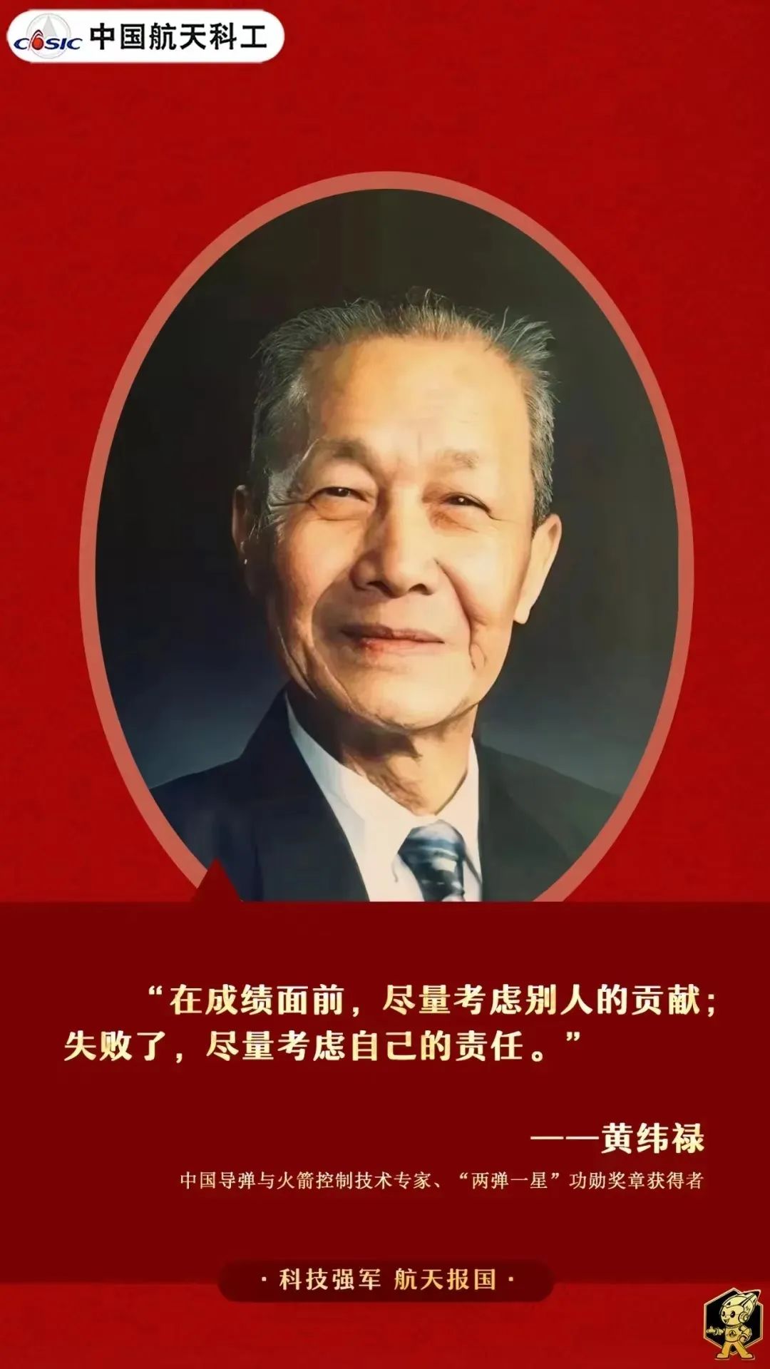 黃緯祿的言行,讓我們看到一位大科學(xué)家投身航天事業(yè)作出的選擇與追求:淡泊名利,求真務(wù)實(shí)。越是遠(yuǎn)離名利,越能聚精會神。尤其作為技術(shù)領(lǐng)導(dǎo),更要把全部精力投入到對科學(xué)真理的追求上:有榮譽(yù),讓,先人后己;有困難,上,身先士卒;有責(zé)任,扛,勇于擔(dān)當(dāng)!