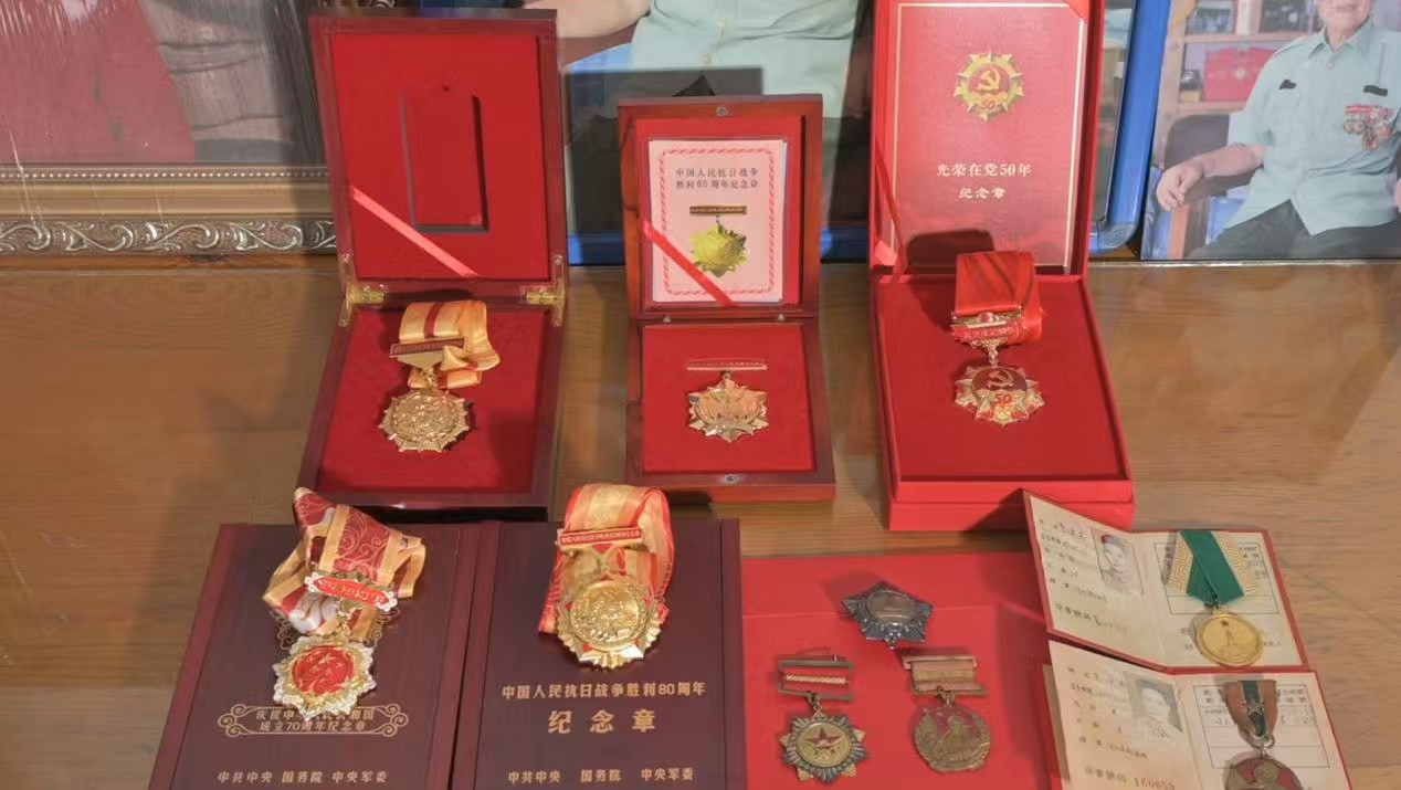 中國人民抗日戰(zhàn)爭(zhēng)勝利60、70、80周年紀(jì)念章、獨(dú)立自由獎(jiǎng)?wù)隆⑷?jí)解放勛章、西北軍區(qū)人民功臣獎(jiǎng)?wù)隆⑷A北解放紀(jì)念章、西南解放勝利紀(jì)念章、航天事業(yè)貢獻(xiàn)獎(jiǎng)40、50、60年紀(jì)念章……這是李俊英及其家人最珍視的東西。