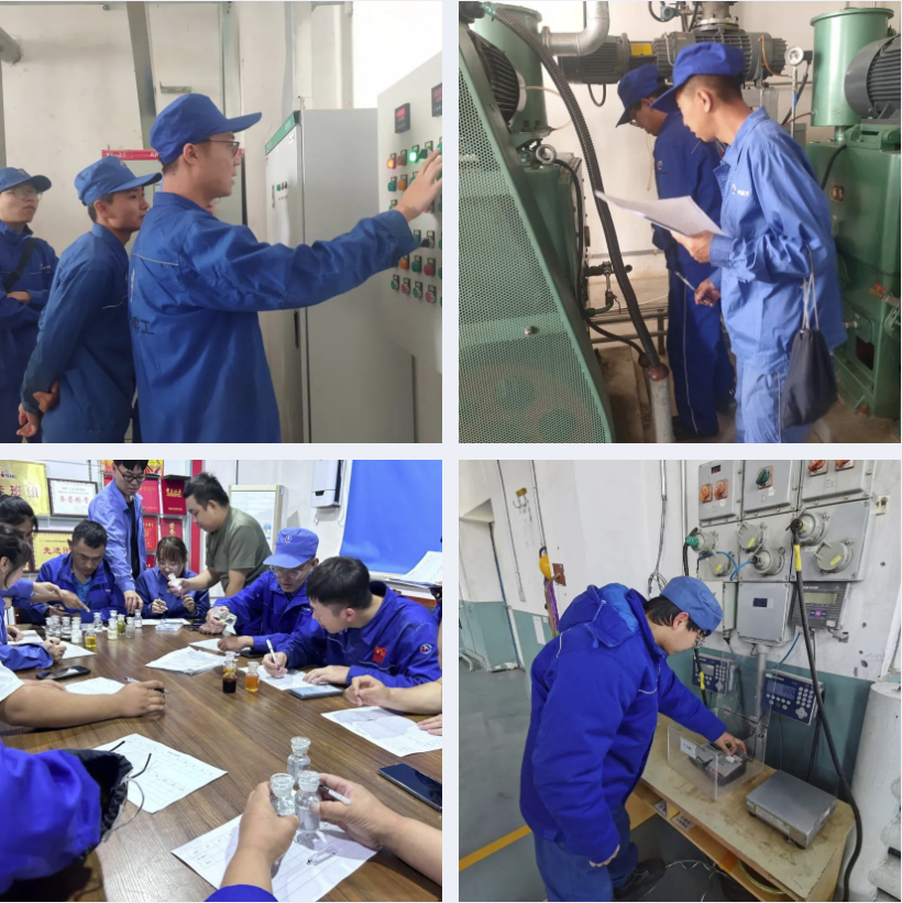 澆注組從設(shè)備操作前準(zhǔn)備工作、操作注意事項、工作結(jié)束設(shè)備關(guān)閉順序、設(shè)備故障判斷推理方法等方面進(jìn)行了重點考察,參賽人員對答如流。稱量組舉行了原材料辨識競賽活動,參賽人員從原材料的狀態(tài)、顏色、氣味、名稱和規(guī)格進(jìn)行判斷,細(xì)微的差別是對參賽人員最好的考驗。