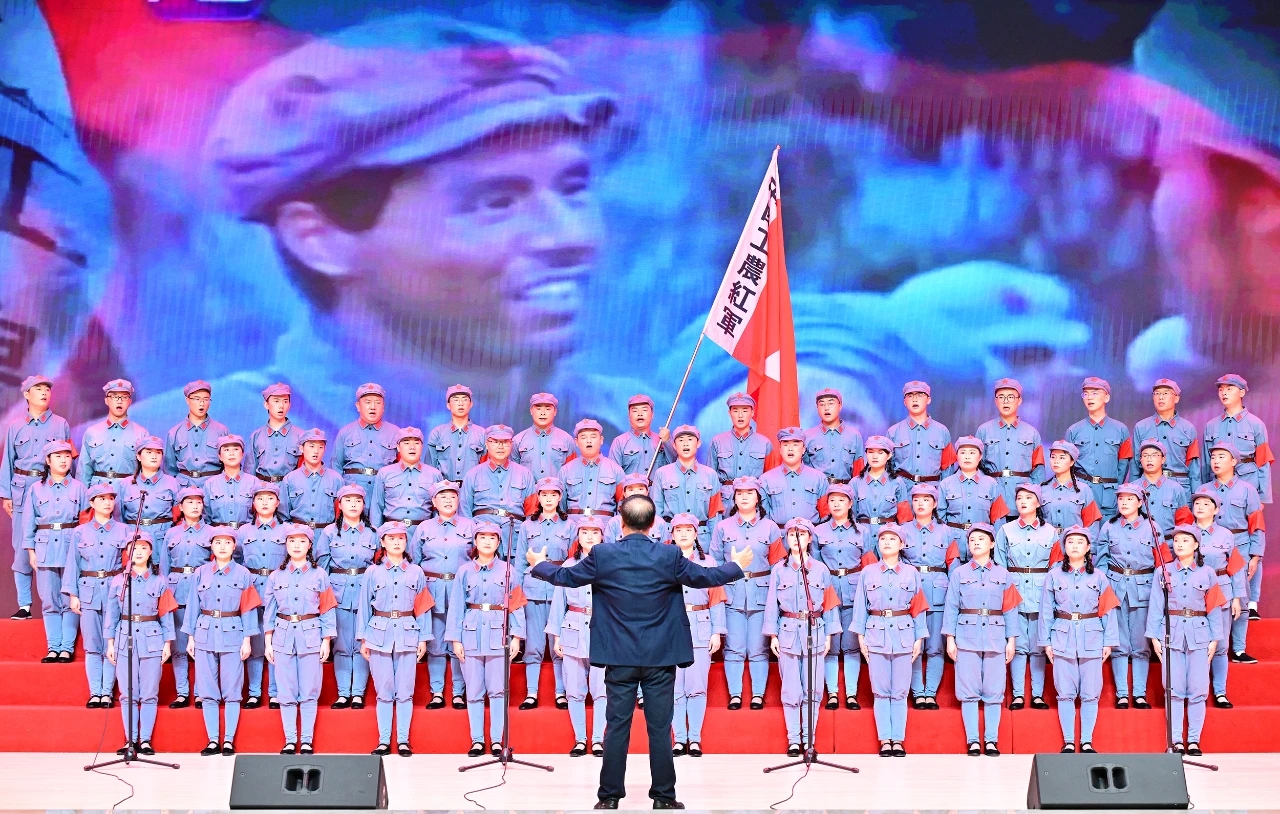 來(lái)自十院本部及各單位的14支參賽隊(duì)同臺(tái)競(jìng)技,用慷慨激昂的歌聲、飽滿(mǎn)真摯的熱情,聲情并茂演繹了《祝福祖國(guó)》《四渡赤水出奇兵》《春風(fēng)十萬(wàn)里》《壯美延安》《我們一起遠(yuǎn)航》《百年守望》《在太行山上》《祖國(guó)不會(huì)忘記》等一首首振奮精神、催人奮進(jìn)的紅色經(jīng)典歌曲,共同追憶崢嶸歲月、傳承紅色基因、凝聚奮進(jìn)力量。比賽結(jié)束后,十部、航天風(fēng)華、航天電器等單位青年為觀眾獻(xiàn)上歌舞表演《山河圖》。