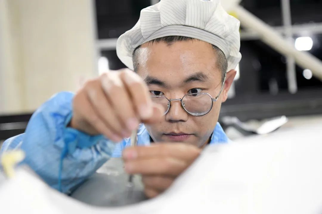 “我們兩個(gè)繼續(xù)組裝,你對裝好的再檢測一遍后提交檢驗(yàn)。”“晚走一點(diǎn),把材料烘好,明天白班直接上手干。”他們邊吃邊討論著工作安排。“干!”其中一名生產(chǎn)人員喊了一聲,休息加上用餐時(shí)間不到15分鐘的他們,一起起身朝工位走去。