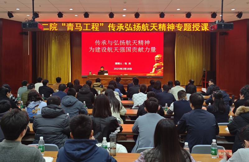 馬杰以錢學森、鄧稼先、任新民、黃緯祿等老一輩航天前輩奉獻擔當?shù)氖论E為例,生動闡述了中國航天事業(yè)在艱難中前行、在人類攀登科技高峰征程中不斷刷新中國高度的偉大歷程。她指出,航天精神是中國航天人自身的特質(zhì)、有獨特的精神稟賦,具有非常重要的傳承價值。航天精神是航天人的意志和品格的集體表達,是支撐航天事業(yè)不斷發(fā)展、續(xù)寫九天攬月壯舉的巨大動力。馬杰勉勵二院青年,要傳承弘揚航天精神,將其融入進血液、落實到行動,勇敢扛起“科技強軍、航天報國”的神圣使命。