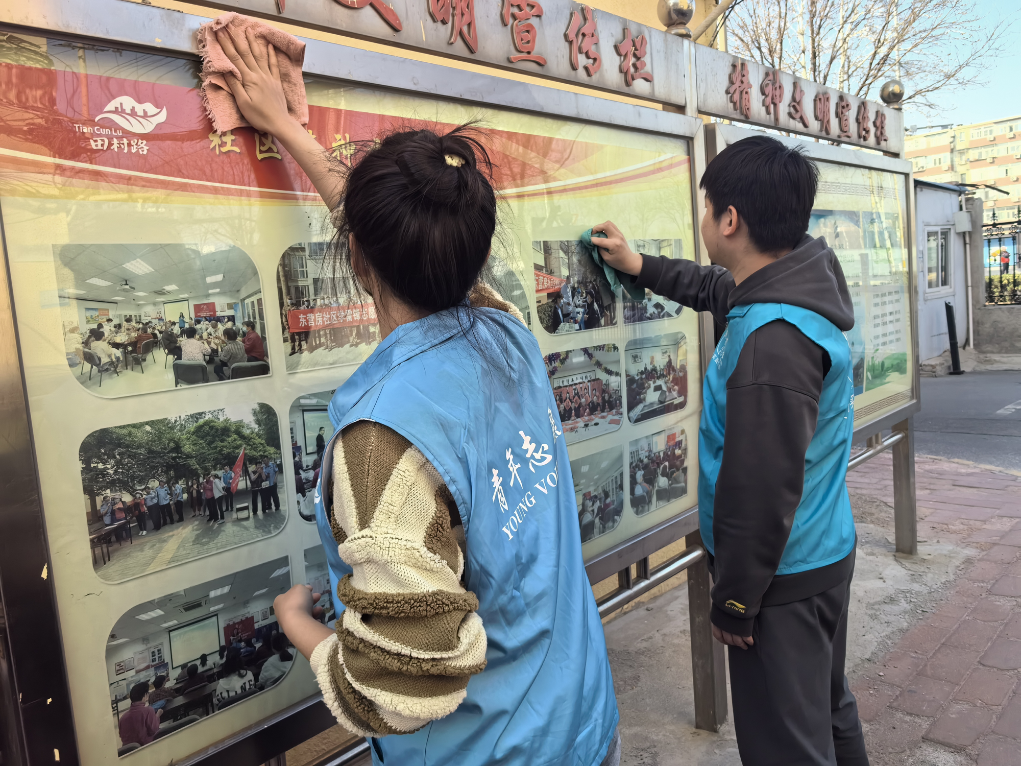 ▲8359所、磁電總體部青年對社區(qū)轄區(qū)內(nèi)的健身器材、宣傳欄、快遞柜等公共區(qū)域進(jìn)行全面清理,拂去冬日的塵埃、綻放春日的明媚。