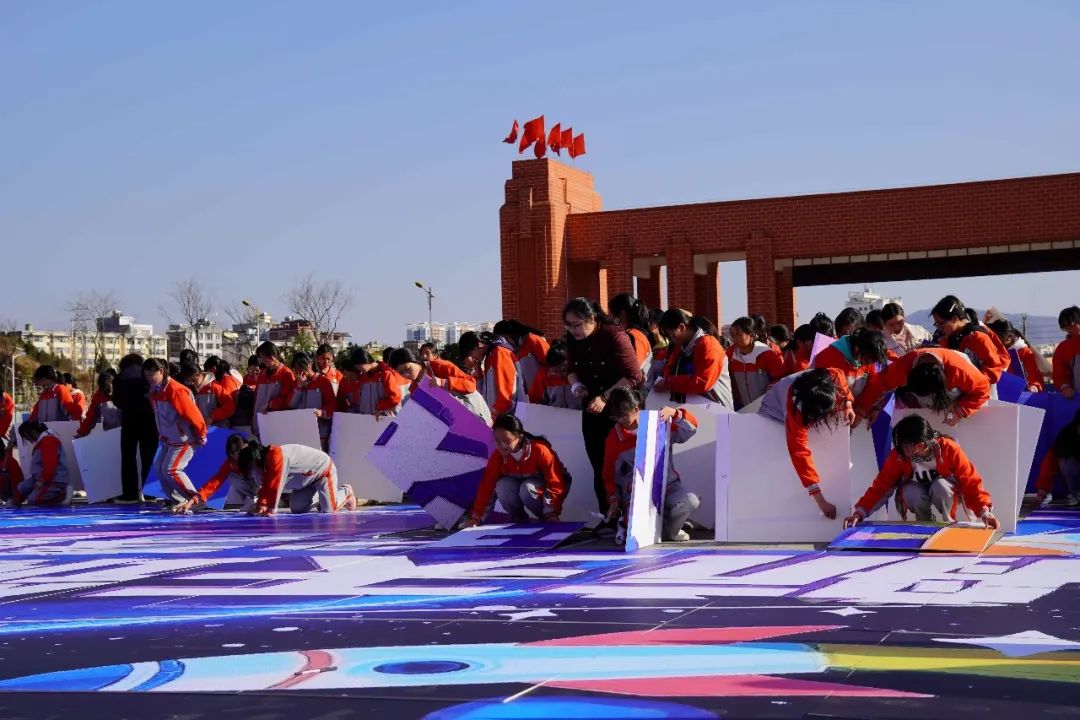 在知識(shí)尋寶環(huán)節(jié),500多位女童參與航天知識(shí)競(jìng)賽,通過答題獲得一塊屬于自己坐標(biāo)的追夢(mèng)大拼圖,根據(jù)手中拼圖的坐標(biāo)在操場(chǎng)上找到相應(yīng)位置,最后共同完成“航天筑夢(mèng)未來 佑我春蕾圓夢(mèng)”拼圖。