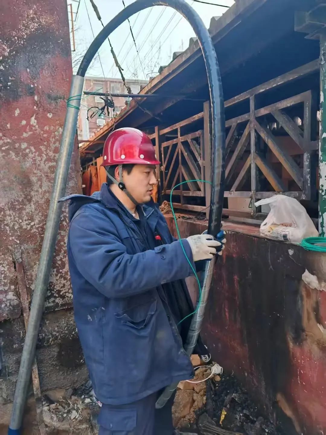 2025年除夕夜,正當(dāng)家人圍爐守歲時,尹航接到緊急搶修電話:“生活區(qū)配電箱起火!”他二話不說沖進(jìn)冷夜,帶領(lǐng)團(tuán)隊(duì)排查故障點(diǎn)。“當(dāng)時零下8度,他的雙手凍得發(fā)紫,卻堅(jiān)持親手接好最后一根電線。”同事迪林記得,當(dāng)燈光重新亮起時,小區(qū)居民隔著窗戶喊“謝謝”,那一刻,這個硬漢眼里閃著光。