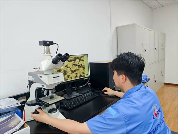 在相對(duì)安靜的金相制備與分析室內(nèi),則是另一番“于無(wú)聲處聽驚雷”的景象。金相組員小天正在顯微鏡下經(jīng)歷著一場(chǎng)更為精細(xì)的“尋微”之戰(zhàn)。經(jīng)過嚴(yán)謹(jǐn)打磨、拋光、腐蝕的樣品被逐一置于高倍顯微鏡下。小天伏在目鏡上,全神貫注,仿佛要將整個(gè)身心都融入材料微觀世界。他緩慢而精準(zhǔn)地旋動(dòng)調(diào)焦旋鈕,目光如最精密的探針,在馬氏體的森林與奧氏體的沙漠間反復(fù)巡弋,不放過任何一絲組織異常的蛛絲馬跡。寂靜中,唯有儀器細(xì)微的運(yùn)轉(zhuǎn)聲與客戶間偶爾壓低交流的聲音。突然,他目光一凝,在數(shù)十件試樣中又鎖定了一件組織異常試樣,果斷標(biāo)記,